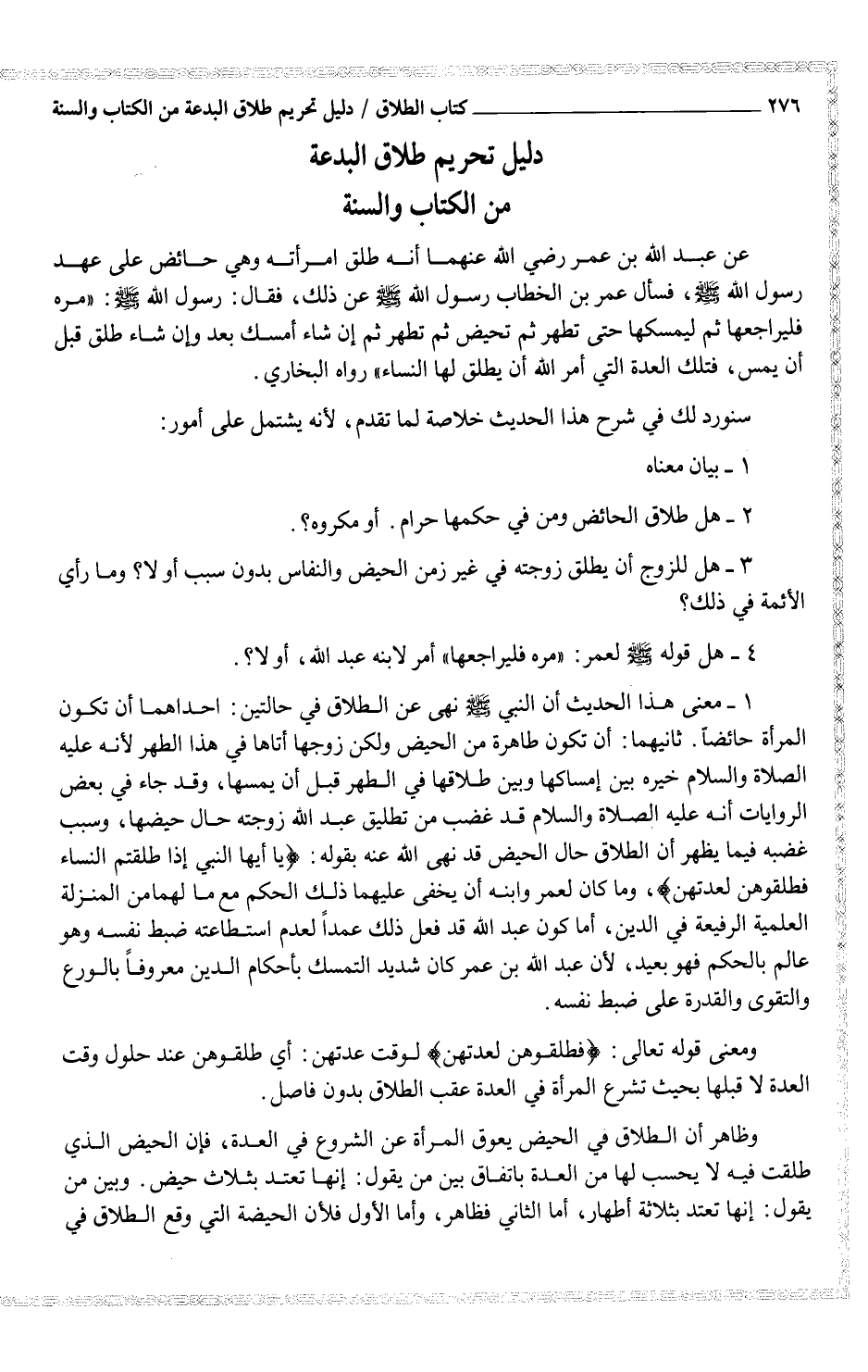 دليل تحريم طلاق البدعة من الكتاب والسنة