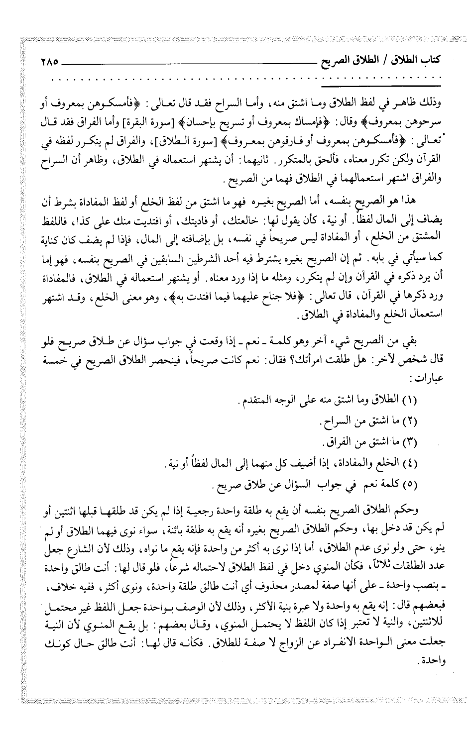 1 - الطلاق وما اشتق منه على الوجه المتقدم.