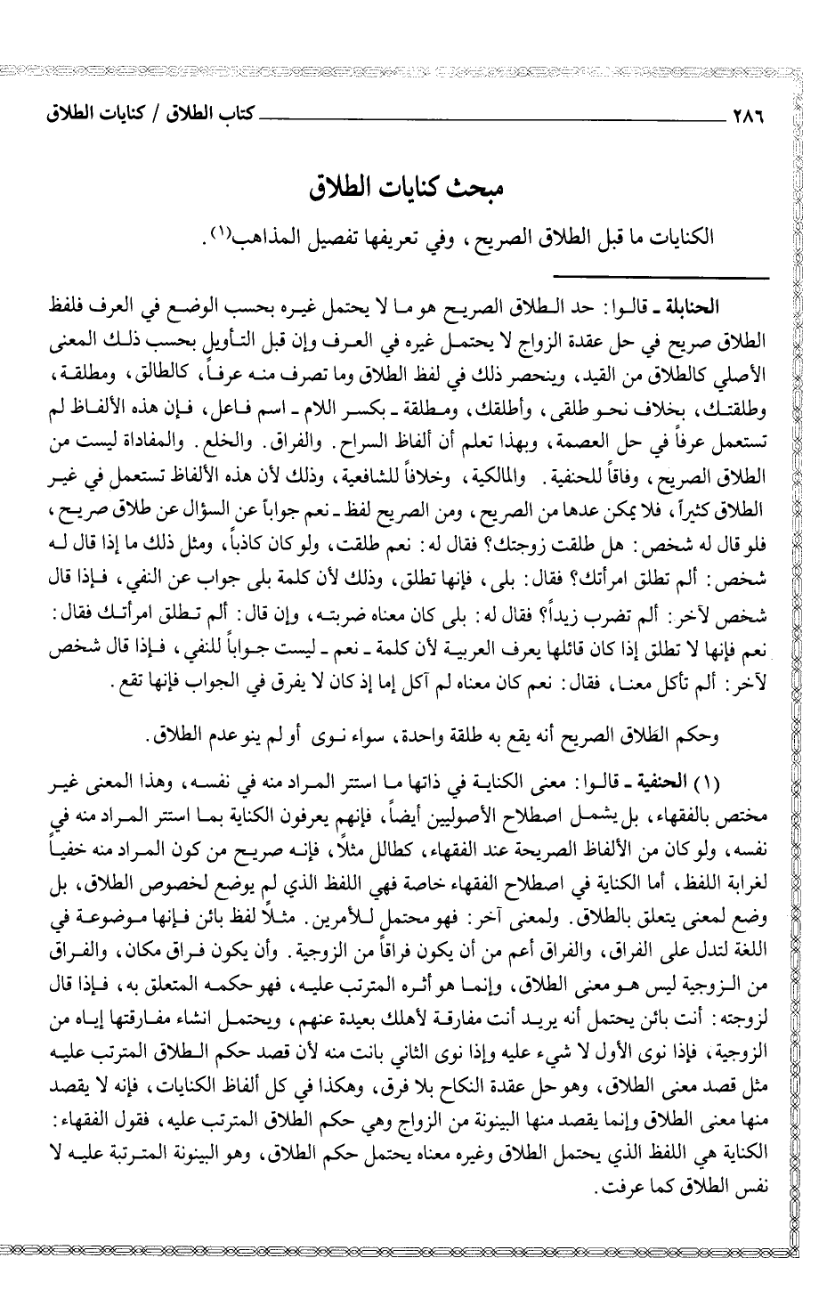 -الكنايات ما قبل الطلاق الصريح، وفي تعريفه تفصيل المذاهب (¬1) .