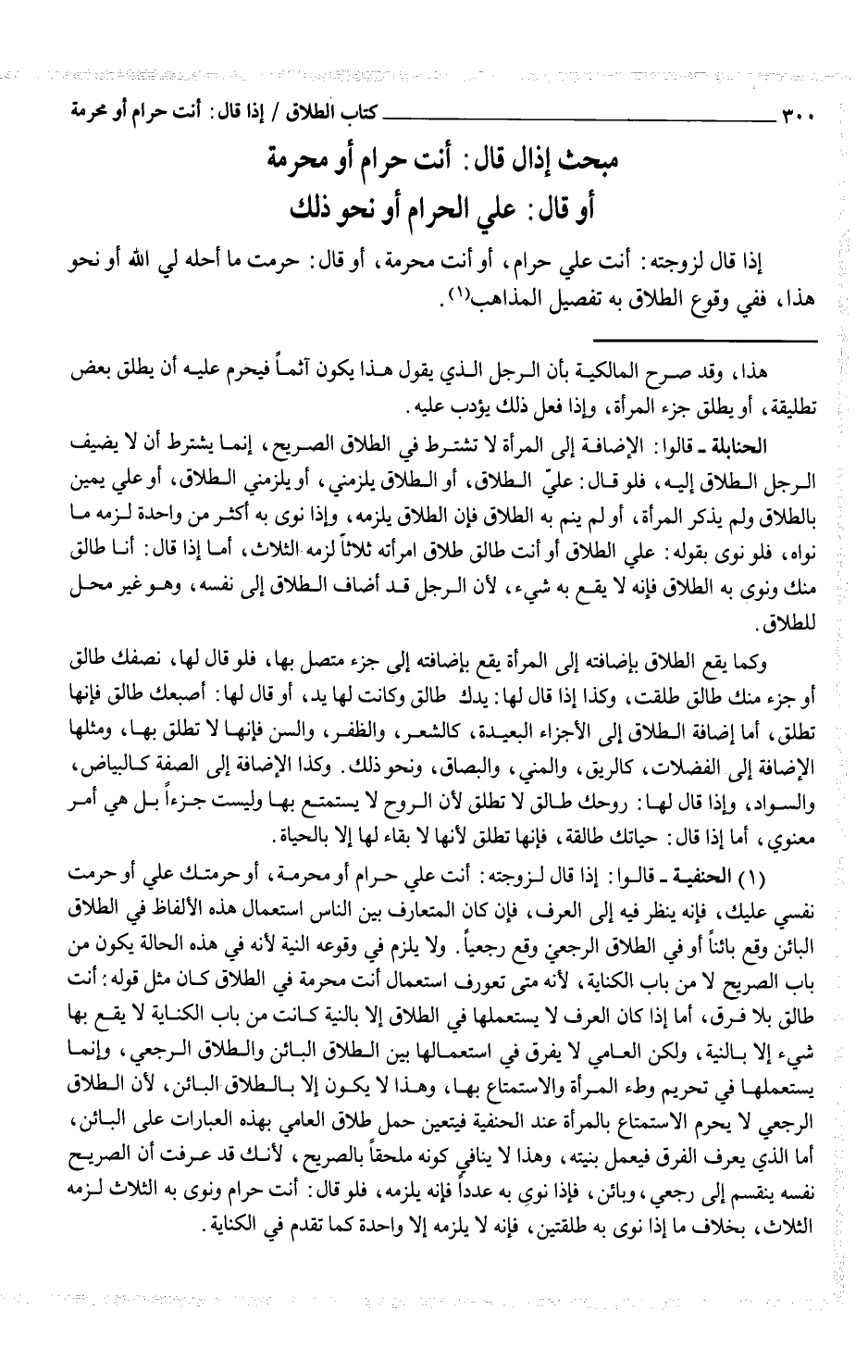مبحث إذا قال: أنت حرام أو محرمة أو قال: علي الحرام أو نحو ذلك