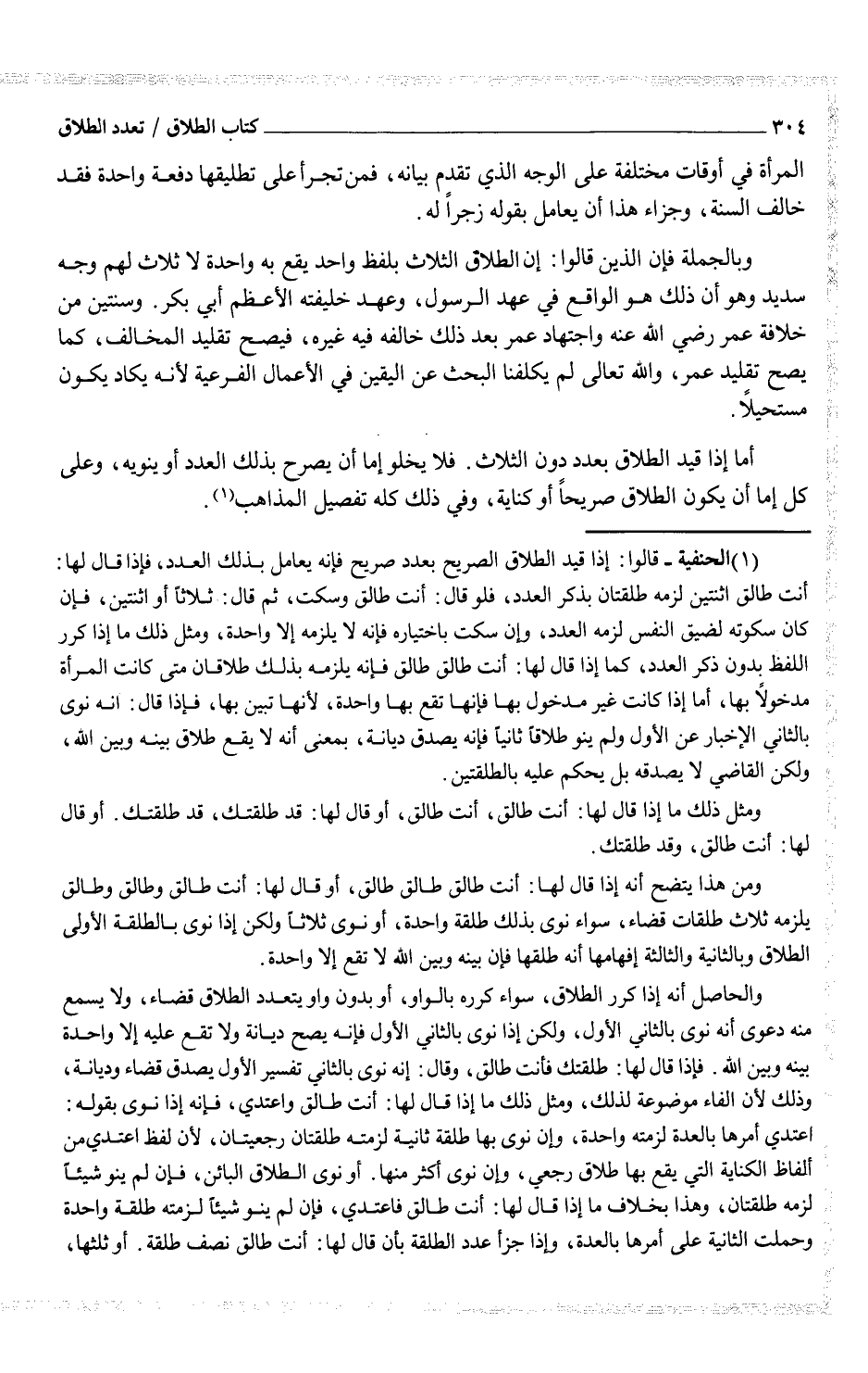 وبالجملة فإن الذين قالوا: إن الطلاق الثلاث بلفظ واحد يقع به واحدة لا ثلاث لهم وجه سديد وهو أن ذلك واقع في عهد الرسول، وعهد خليفته الأعظم أبي بكر. وسنتين من خلافة عمر رضي الله عنه واجتهاد عمر بعد ذلك خالفه فيه غيره، فيصح تقليد المخالف، كما يصح تقليد عمر، والله تعالى لم يكلفنا البحث عن اليقين في الأعمال الفرعية لأنه يكاد يكون مستحيلاً.