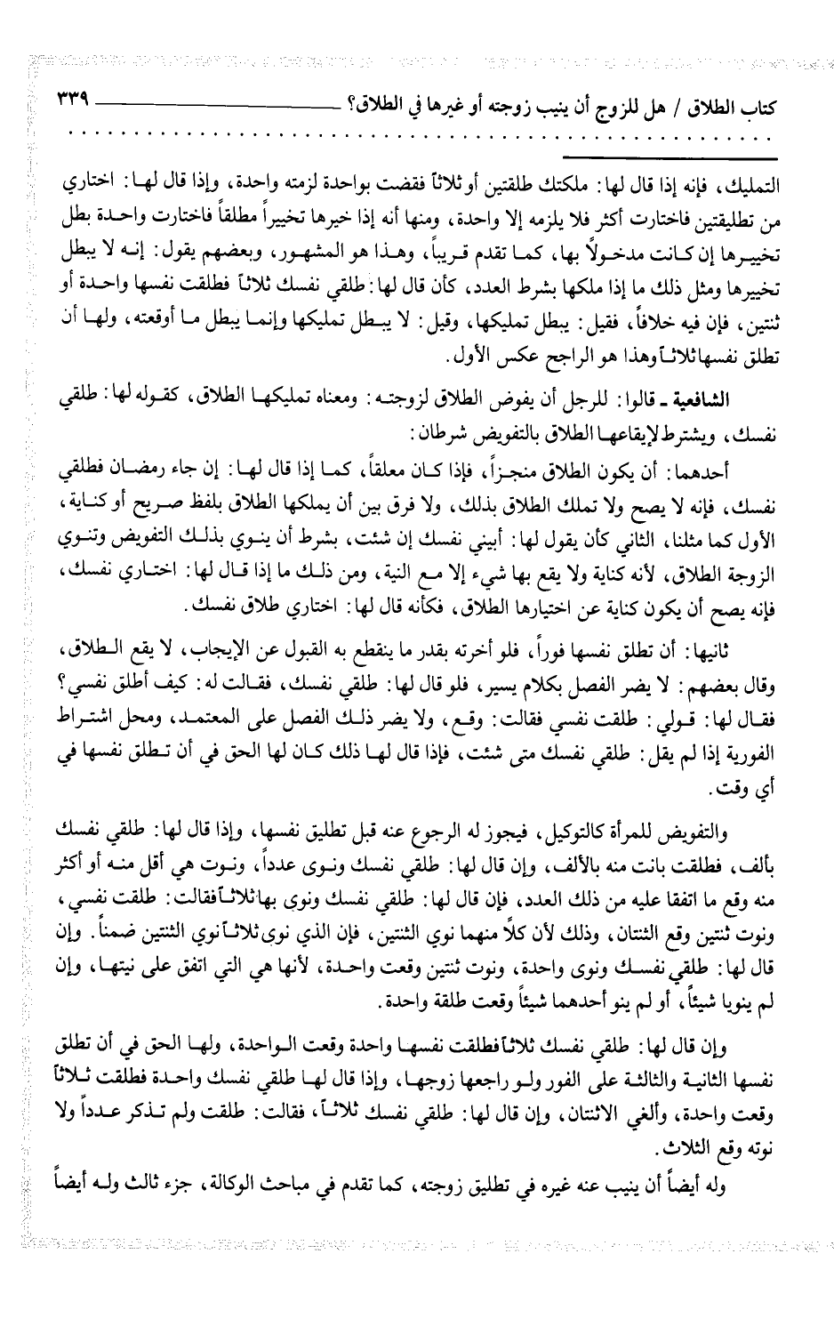 وله أيضاً أن ينيب عنه غيره في تطليق زوجته، كما تقدم في مباحث الوكالة، جزء ثالث وله أيضاً