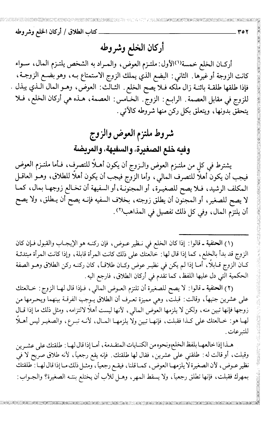 شروط ملتزم العوض والزوج وفيه خلع الصغيرة، والسفيهة، والمريضة.
