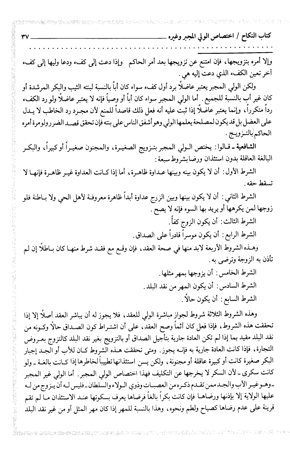 الشافعية - قالوا: يختص الولي المجبر بتزويج الصغيرة، والمجنون صغيراً أو كبيراً، والبكر البالغة العاقلة بدون استئذان ورضا بشروط سبعة:
