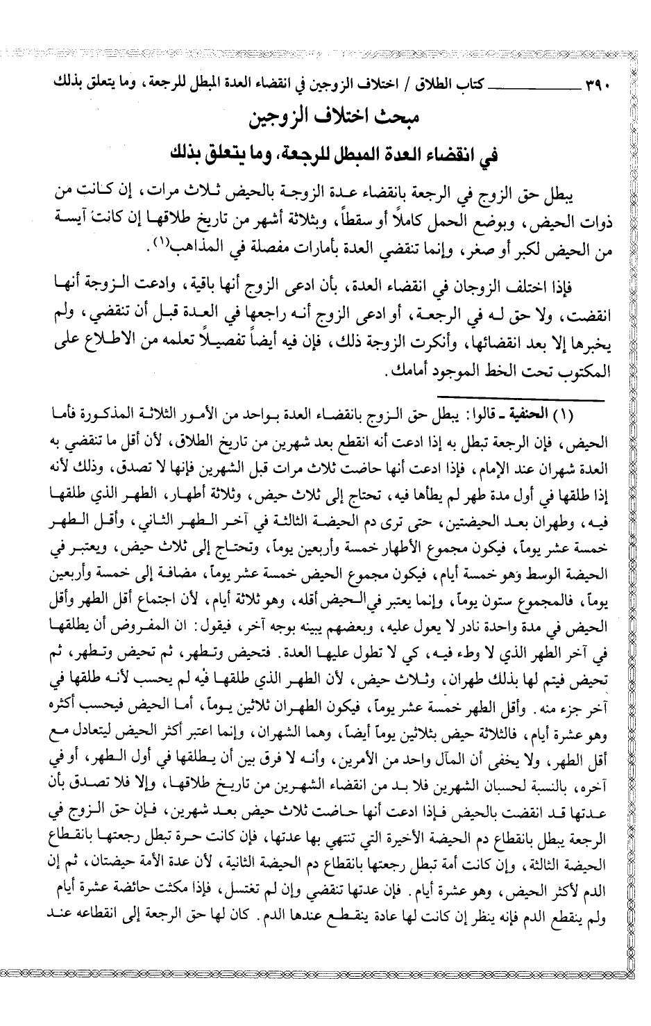مبحث اختلاف الزوجين في انقضاء العدة المبطل للرجعة، وما يتعلق بذلك.