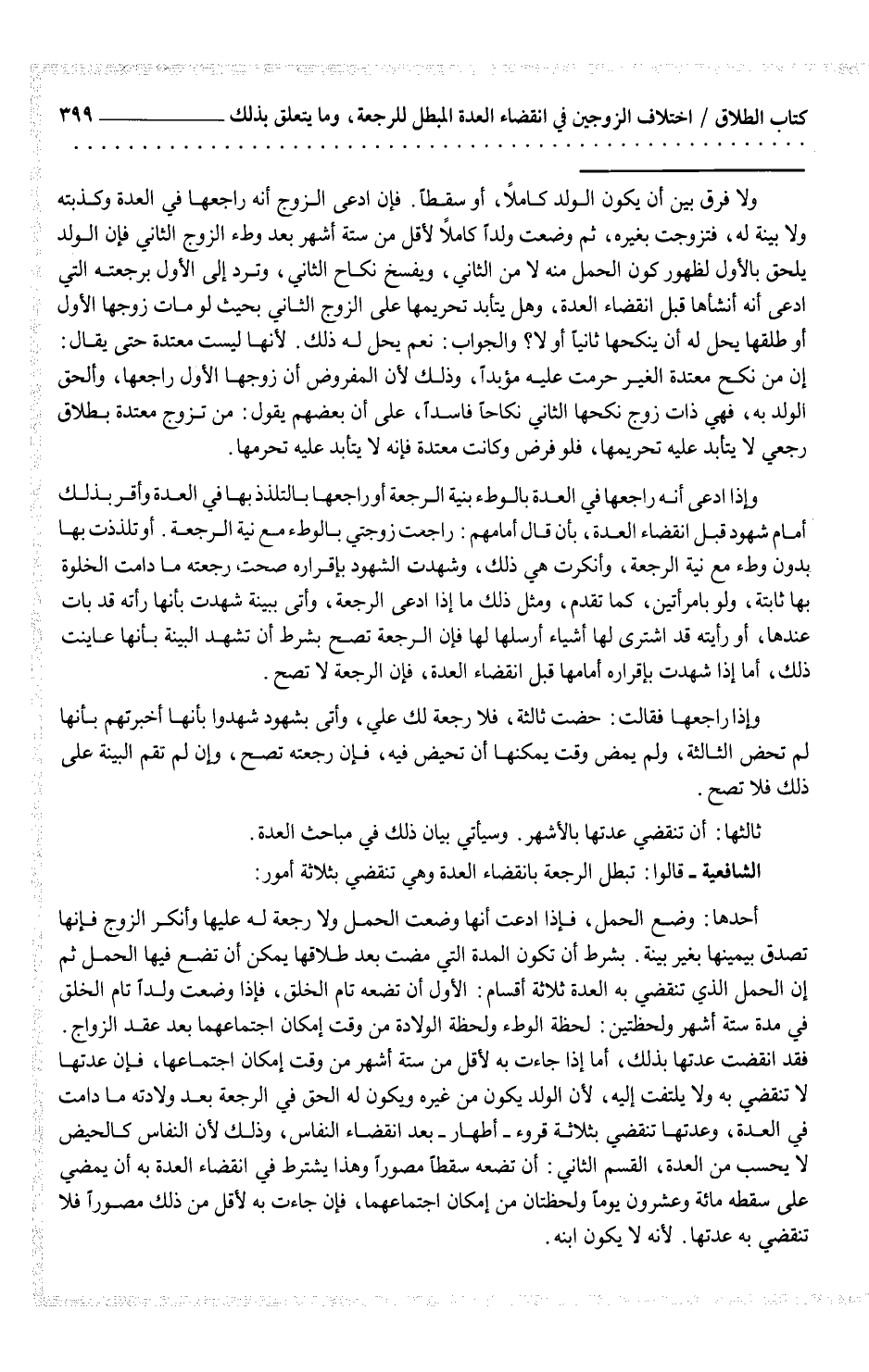ولا فرق بين أن يكون الولد كاملاً، أو سقطاً. فإذا ادعى الزوج أنه راجعها في العدة كذبته ولا بينة له، فتزوجت بغيره، ثم وضعت ولداً كاملاً لأقل من ستة أشهر بعد وطء الزوج الثاني فإن الولد يلحق بالأول لظهور كون الحمل منه لا من الثاني، ويفسخ النكاح الثاني، وترد إلى الأول برجعته التي ادعى أنه أنشأها قبل انقضاء العدة، وهل يتأبد تحريمها على الزوج الثاني بحيث لو مات زوجها الأول أو طلقها يحل له أن ينكحها ثانياً أو لا؟ والجواب: نعم يحل له ذلك. لأنها ليست معتدة حتى يقال: إن من نكح معتدة الغير حرمت عليه مؤبداً، وذلك لأن المفروض أن زوجها الأول راجعها، وألحق الولد به، فهي ذات زوج نكحها الثاني نكاحاً فاسداً، على أن بعضهم يقول: من تزوج معتدة بطلاق رجعي لا يتأبد عليه تحريمها، فلو فرض وكانت معتدة فإنه لا يتأبد عليه تحرمها.