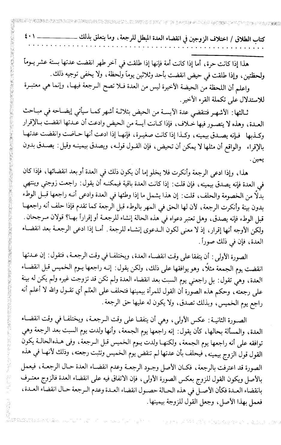هذا، وإذا ادعى الرجعة وأنكرت فلا يخلو إما أن يكون ذلك في العدة أو بعد انقضائها، فإذا كان في العدة فإنه يصدق بيمينه، فإن قلت: إذا كانت العدة باقية فيمكنه أن يقول: راجعت زوجتي وينتهي بدلاً من الخصومة والحلف، قلت: إن هذا يشمل ما إذا وطئها في العدة وادعى أنه راجعها قبل الوطء بدون بينة وأنكرت الرجعة، لأن لها الحق في المهر بالوطء قبل الرجعة كما تقدم فإذا حلف أنه راجعها قبل الوطء فإنه يصدق، وهل تعتبر دعواه في هذه الحالة إنشاء للرجعة أو إقراراً بها؟ قولان مرجحان. ولكن الأوجه أنها إقرار، إذ لا معنى لكون الدعوى إنشاء للرجعة. أما إذا ادعى الرجعة بعد انقضاء العدة، فإن في ذلك صوراً.