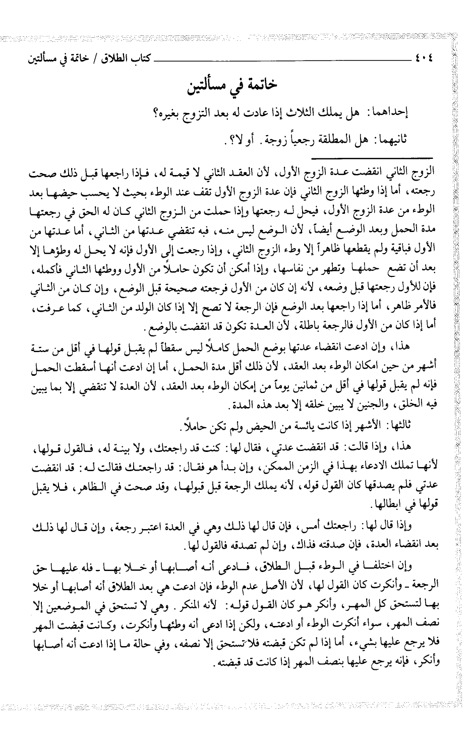 -إحداهما: هل يملك الثلاث إذا عادت له بعد التزوج بغيره؟