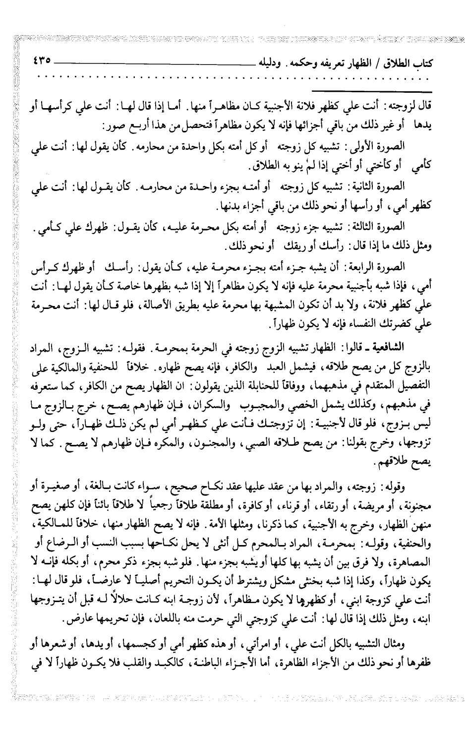 الصورة الثالثة: تشبيه جزء زوجته، أو أمته بكل محرمة عليه، كأن يقول: ظهرك علي كأمي ومثل ذلك ما إذا قال: رأسك أو ريقك، أو نحو ذلك.