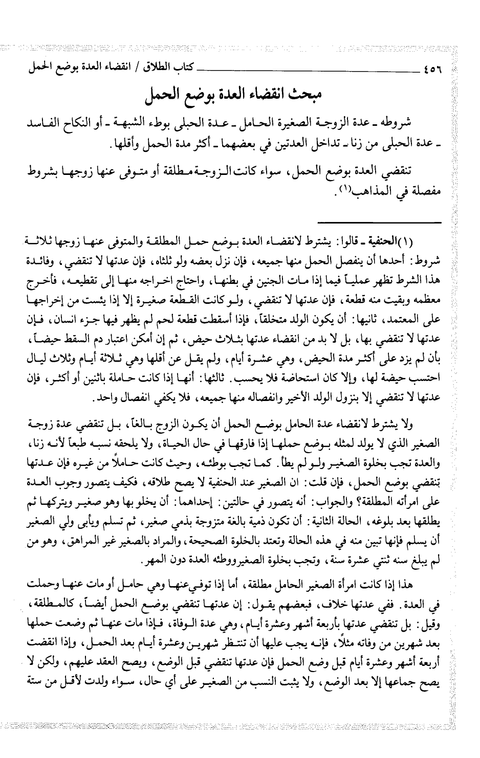 -شروطه - عدة الزوجة الصغيرة الحامل - عدة الحبلى بوطء الشبهة - أو النكاح الفاسد - عدة الحبلى من زنا - تداخل العدتين في بعضهما - أكثر مدة الحمل وأقلها.