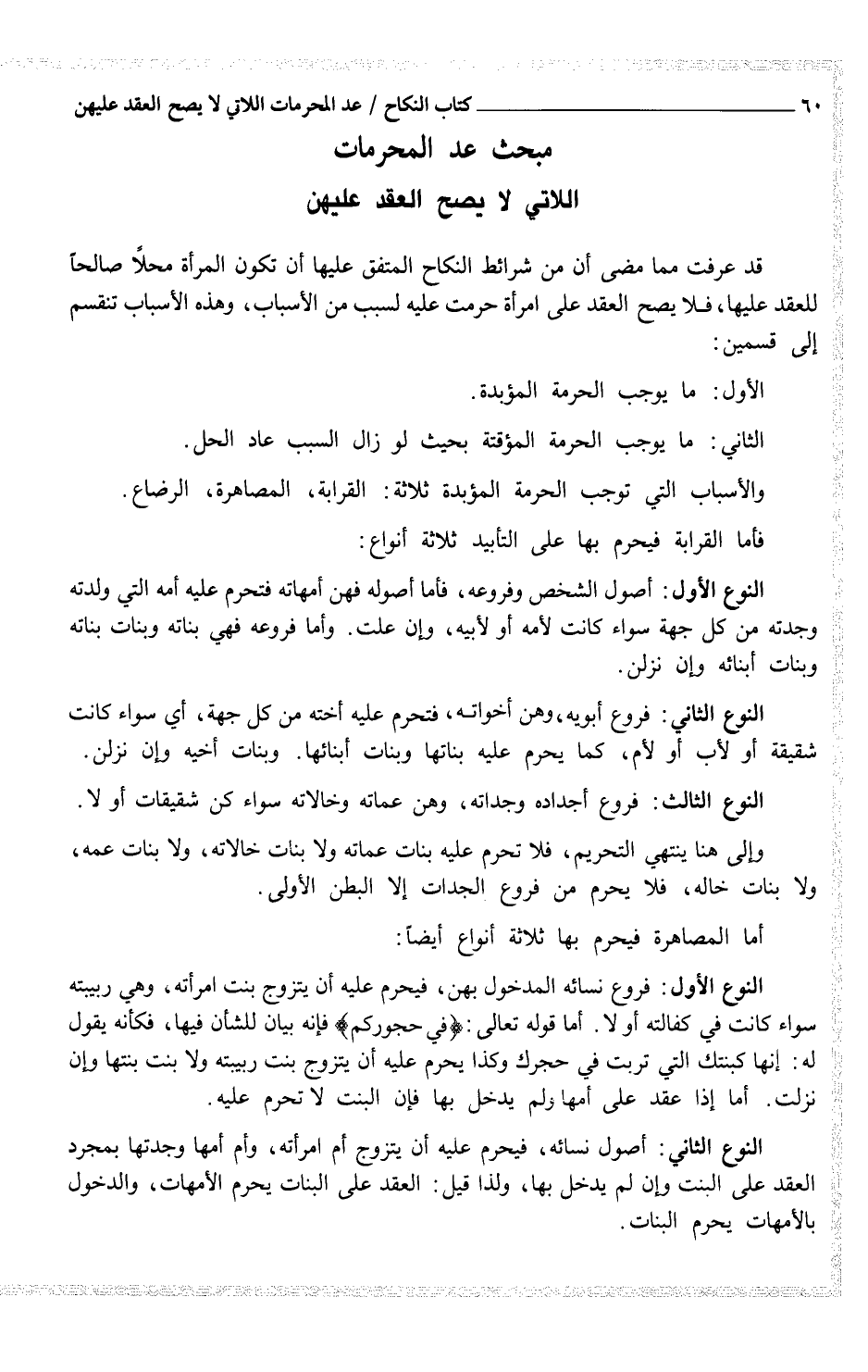 مبحث عد المحرمات اللاتي لا يصح العقد عليهن