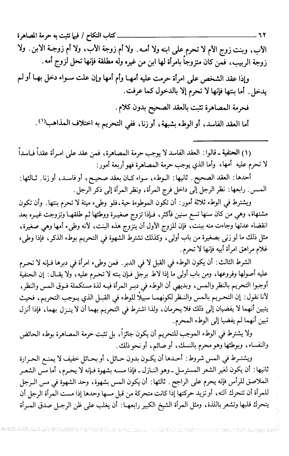 (¬1) (الحنفية - قالوا: العقد الفاسد لا يوجب حرمة المصاهرة، فمن عقد على امرأة عقداً فاسداً لا تحرم عليه أمها، وأما الذي يوجب حرمة المصاهرة فهو أربعة أمور:
