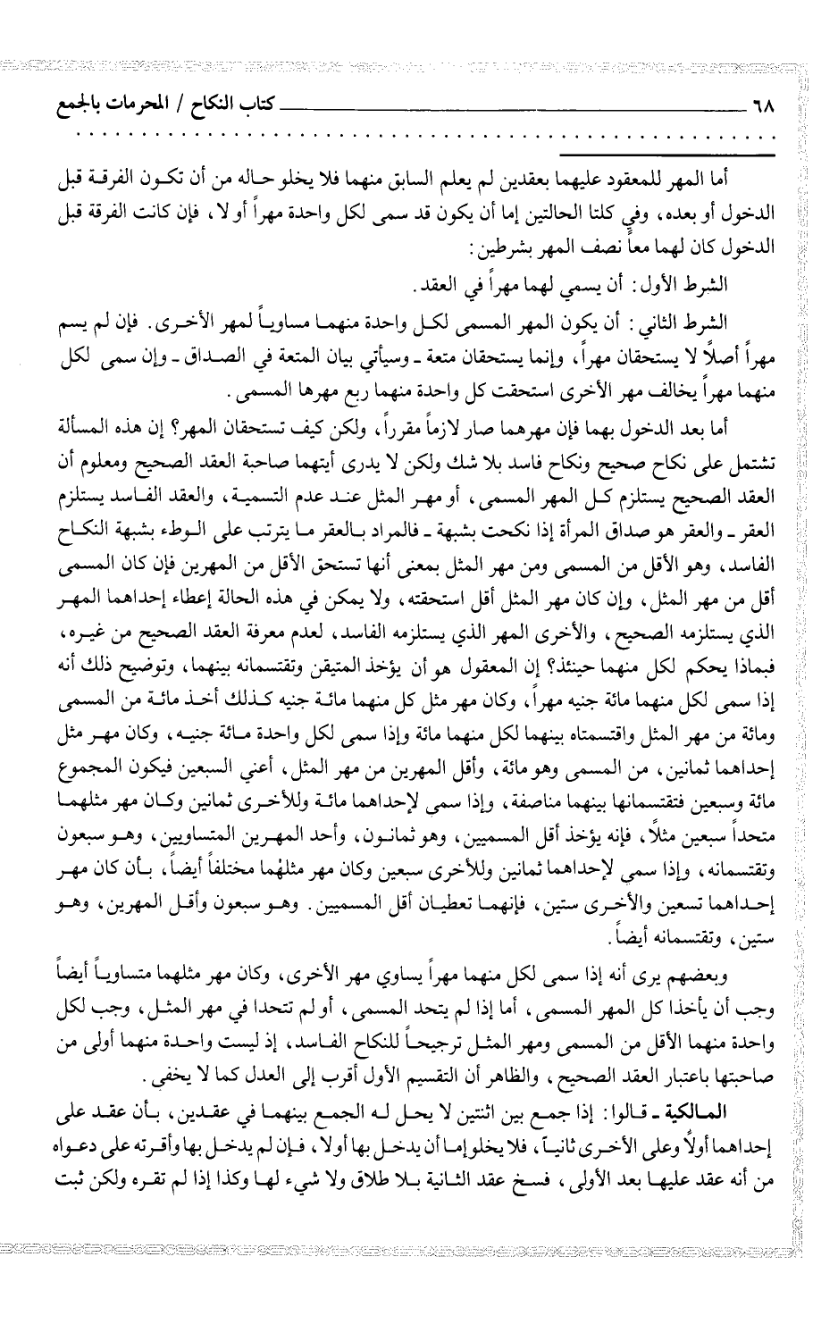 وبعضهم يرى أنه إذا سمى لكل منهما مهراً يساوي مهر الأخرى، وكان مثلهما متساوياً أيضاً وجب أن يأخذا كل المهر المسمى، أما إذا لم يتحد المسمى، أو لم تتحدا في مهر المثل، وجب لكل واحدة منهما الأقل من المسمى ومهر المثل ترجيحاً للنكاح الفاسد، إذ ليست واحدة منهما أولى من صاحبتها باعتبار العقد الصحيح، والظاهر أن التقسيم الأول
