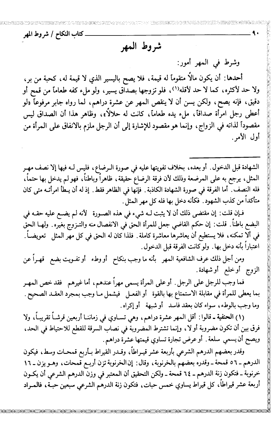-وشرط في المهر أمور: