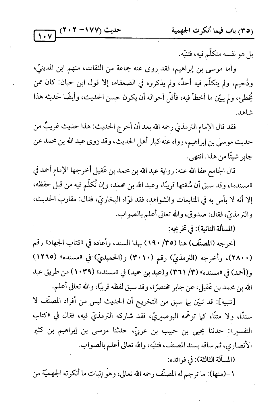 1 - (منها): ما ترجم له المصنّف رحمه الله تعالى، وهو إثبات ما أنكرته الجهميّة من