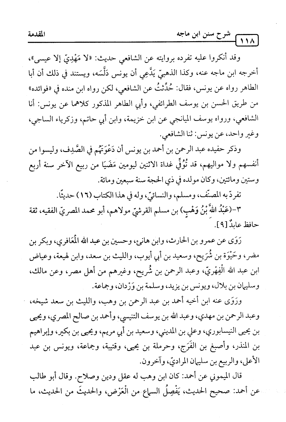 3 - (عَبْدُ الله بْنُ وَهْبٍ) بن مسلم القرشيّ مولاهم، أبو محمّد المصريّ الفقيه، ثقة حافظ عابدٌ [9].