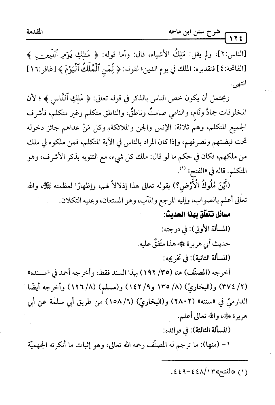 [النَّاس: 2]، ولم يقل: مَلِكُ الأشياء، قال: وأما قوله: {مَالِكِ يَوْمِ الدِّينِ} [الفاتحة: 4]، فتقديره: الملك في يوم الدين؛ لقوله: {لِمَنِ الْمُلْكُ الْيَوْمَ} [غافر: 16] انتهى.