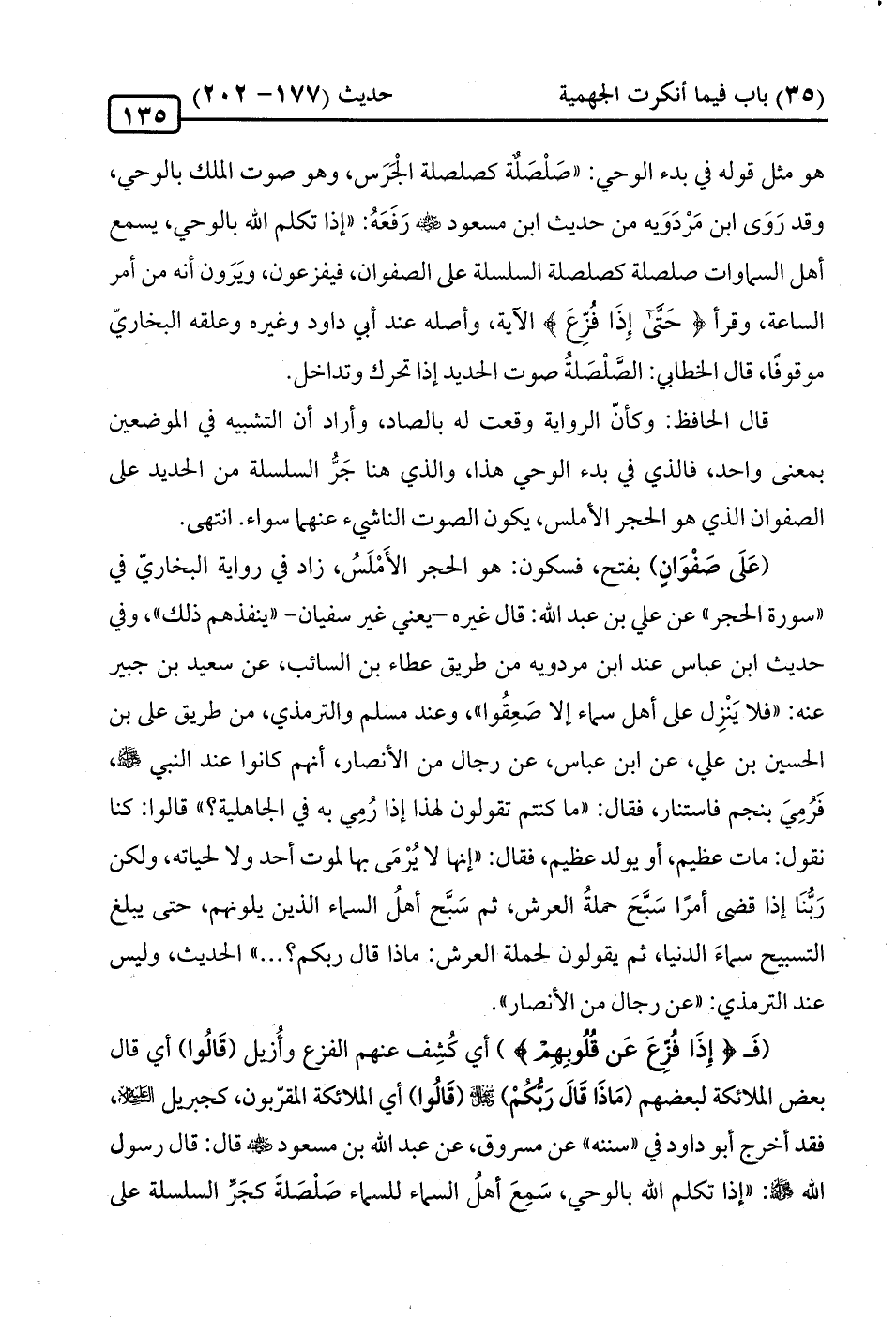قال الحافظ: وكأنّ الرِّواية وقعت له بالصاد، وأراد أن التشبيه في الموضعين بمعنى واحد، فالذي في بدء الوحي هذا، والذي هنا جَرُّ السلسلة من الحديد على الصفوان الّذي هو الحجر الأملس، يكون الصوت الناشيء عنهما سواء. انتهى.