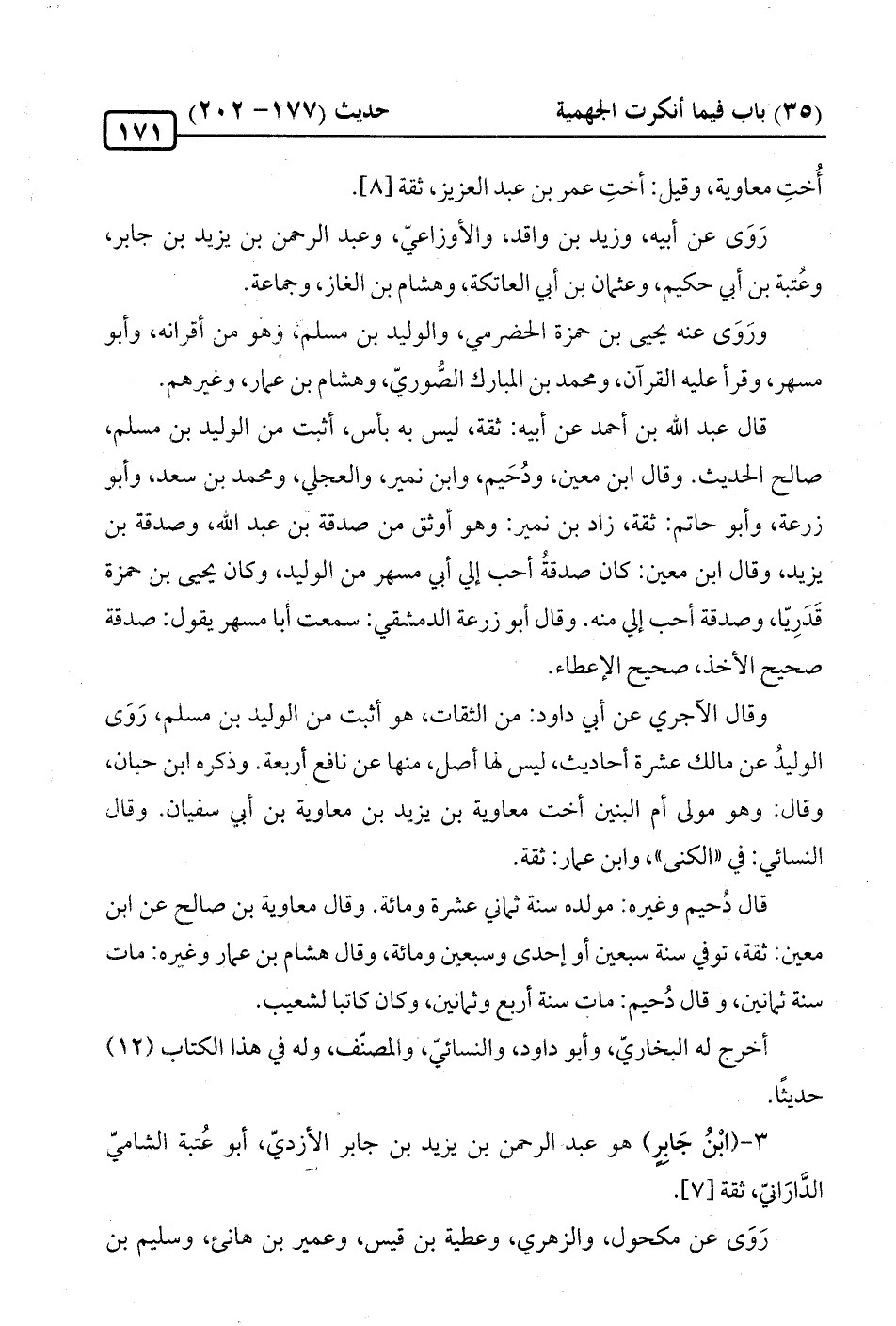3 - (ابْنُ جَابرٍ) هو عبد الرحمن بن يزيد بن جابر الأزديّ، أبو عُتبة الشاميّ الدَّارَاني، ثقة [7].