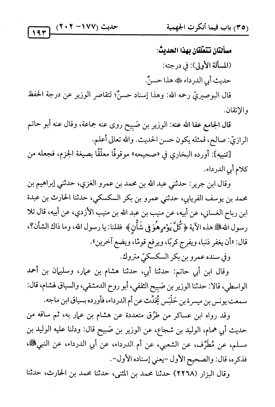 [تنبيه]: أورده البخاري في "صحيحه" موقوفًا معلّقًا بصيغة الجزم، فجعله من كلام أبي الدرداء.