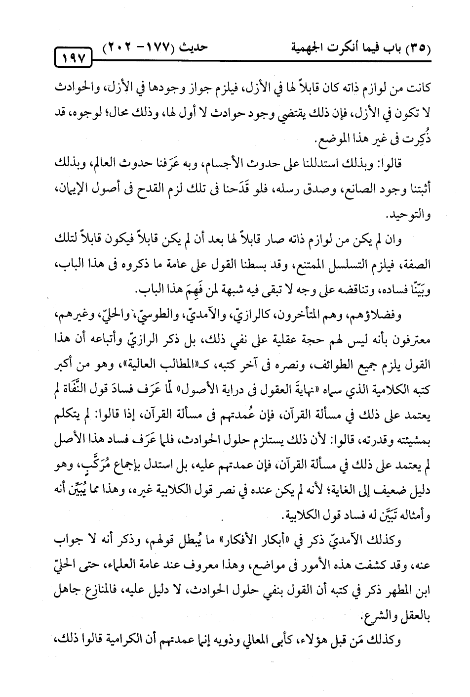 وكذلك الآمديّ ذكر في "أبكار الأفكار" ما يُبطل قولهم، وذكر أنه لا جواب عنه، وقد كشفت هذه الأمور في مواضع، وهذا معروف عند عامة العلماء، حتى الحليّ ابن المطهر ذكر في كتبه أن القول بنفي حلول الحوادث، لا دليل عليه، فالمنازع جاهل بالعقل والشرع.