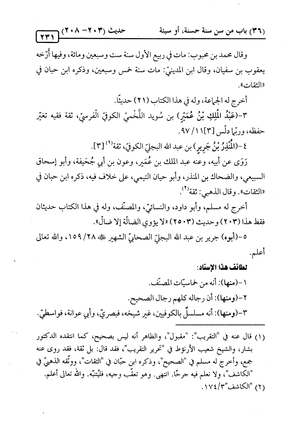 (¬1) قال عنه في "التقريب": "مقبول"، والظاهر أنه ليس بصحيح، كما انتقده الدكتور بشار، والشيخ شعيب الأرناؤوط في "تحرير التقريب"، فقد قال. بل ثقة، فقد روى عنه جمع، وأخرج له مسلم في "الصحيح"، وذكره ابن حبّان في "الثقات"، ووثقه الذهبيُّ في "الكاشف"، ولا نعلم فيه جرحًا. انتهى. وهو تعقّب وجيه، فليتنبّه. والله تعالى أعلم.