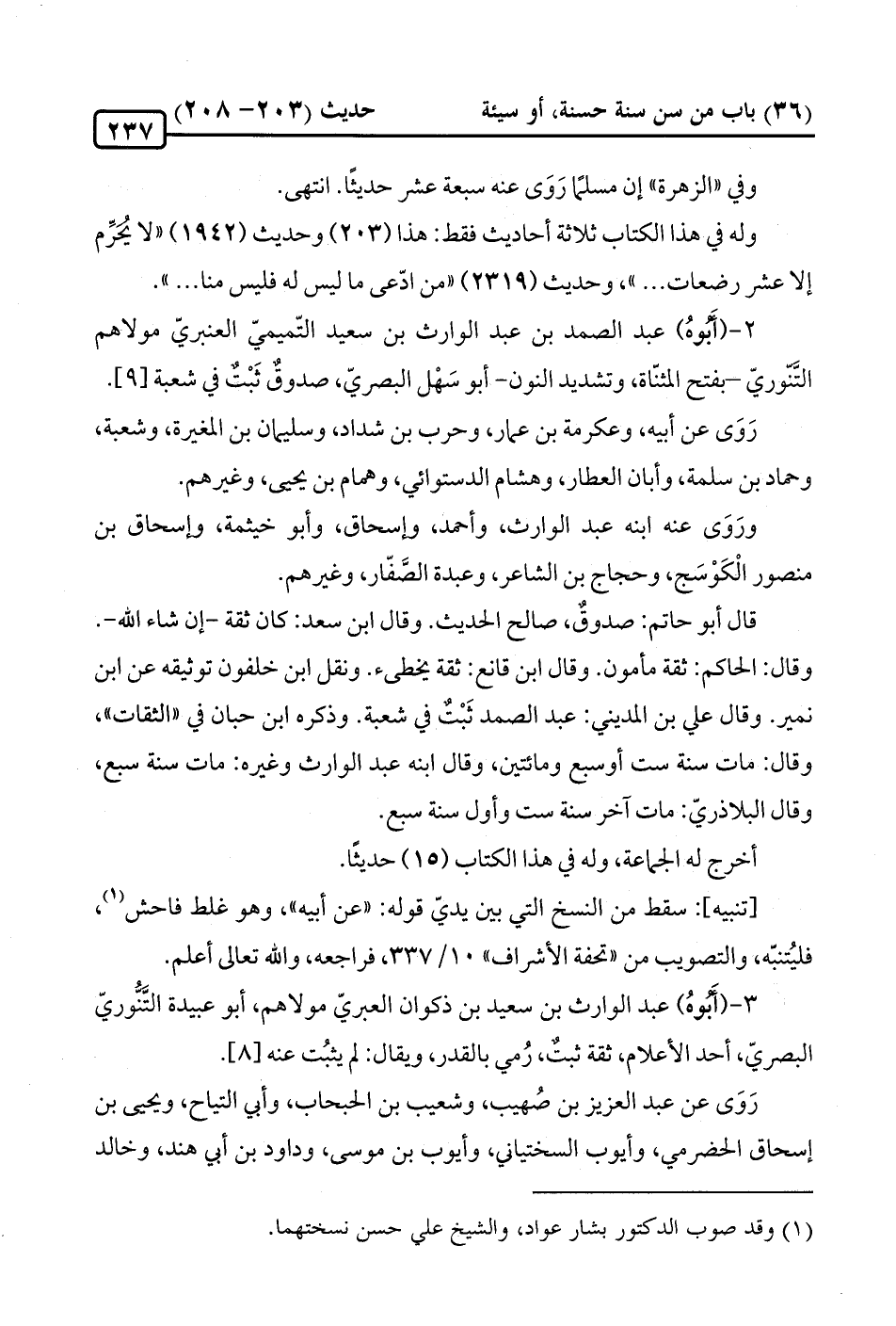 (¬1) وقد صوب الدكتور بشار عواد، والشيخ علي حسن نسختهما.