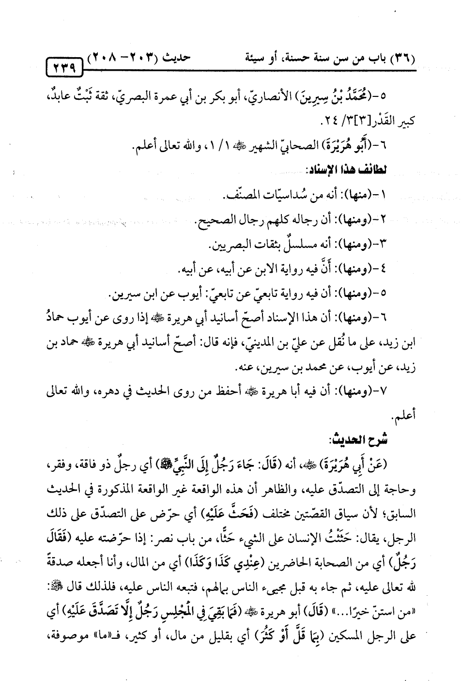 6 - (ومنها): أن هذا الإسناد أصحّ أسانيد أبي هريرة -صلى الله عليه وسلم- إذا روى عن أيوب حمادُ ابن زيد، على ما نُقل عن عليّ بن المدينيّ، فإنه قال: أصحّ أسانيد أبي هريرة -رضي الله عنه- حماد بن زيد، عن أيوب، عن محمد بن سيرين، عنه.