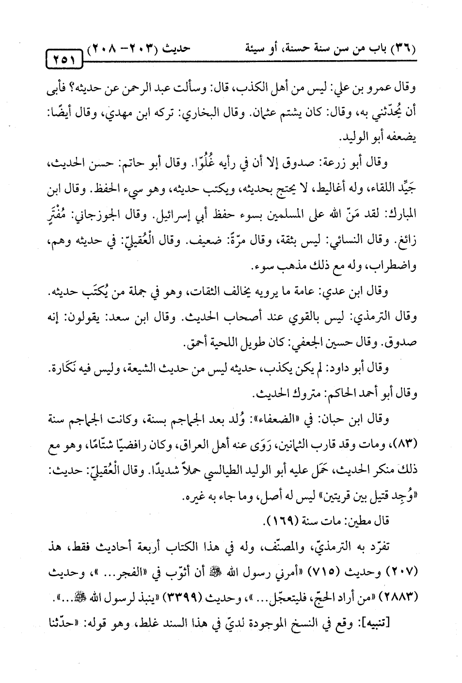 تفرّد به الترمذيّ، والمصنّف، وله في هذا الكتاب أربعة أحاديث فقط، هذه (207) وحديث (715) "أمرني رسول الله -صلى الله عليه وسلم- أن أثوّب في "الفجر ... "، وحديث (2883) "من أراد الحجّ، فليتعجّل ... "، وحديث (3399) "ينبذ لرسول الله -صلى الله عليه وسلم- ... ".