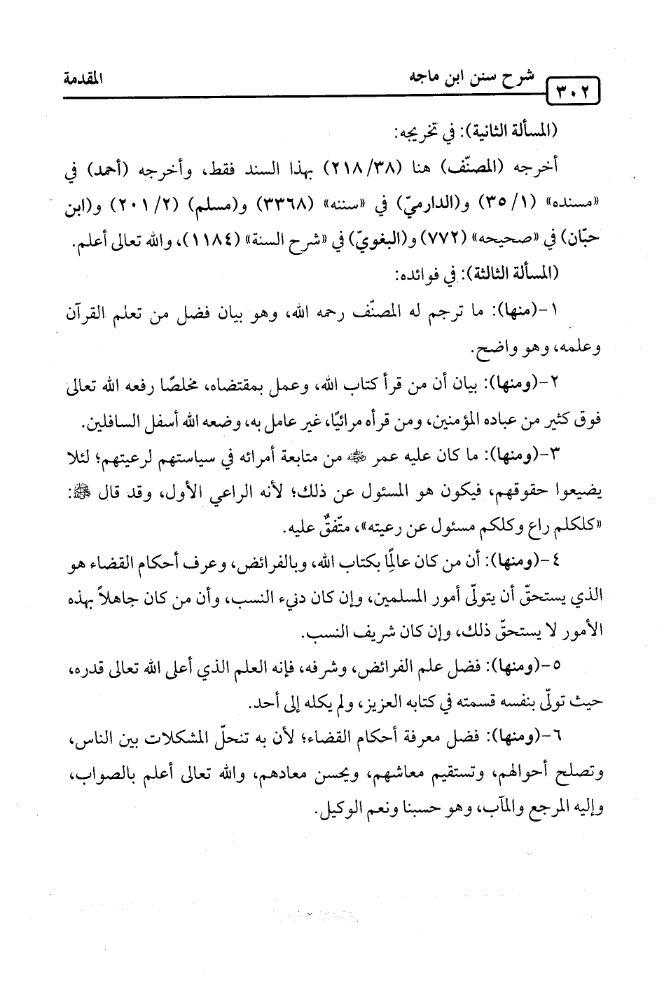 6 - (ومنها): فضل معرفة أحكام القضاء؛ لأن به تنحلّ المشكلات بين الناس، وتصلح أحوالهم، وتستقيم معاشهم، ويحسن معادهم، والله تعالى أعلم بالصواب، وإليه المرجع والمآب، وهو حسبنا ونعم الوكيل.