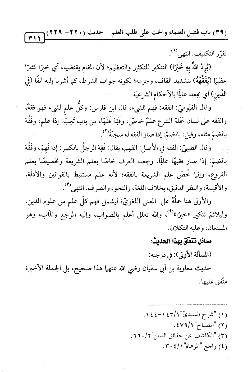 والأولى هنا حملُهُ على المعنى اللغويّ؛ ليشمل فهم كلّ علم من علوم الدين، وليلائمَ تنكير "خيرًا" (¬4)، والله تعالى أعلم بالصواب، وإليه المرجع والمآب، وهو المستعان، وعليه التكلان.