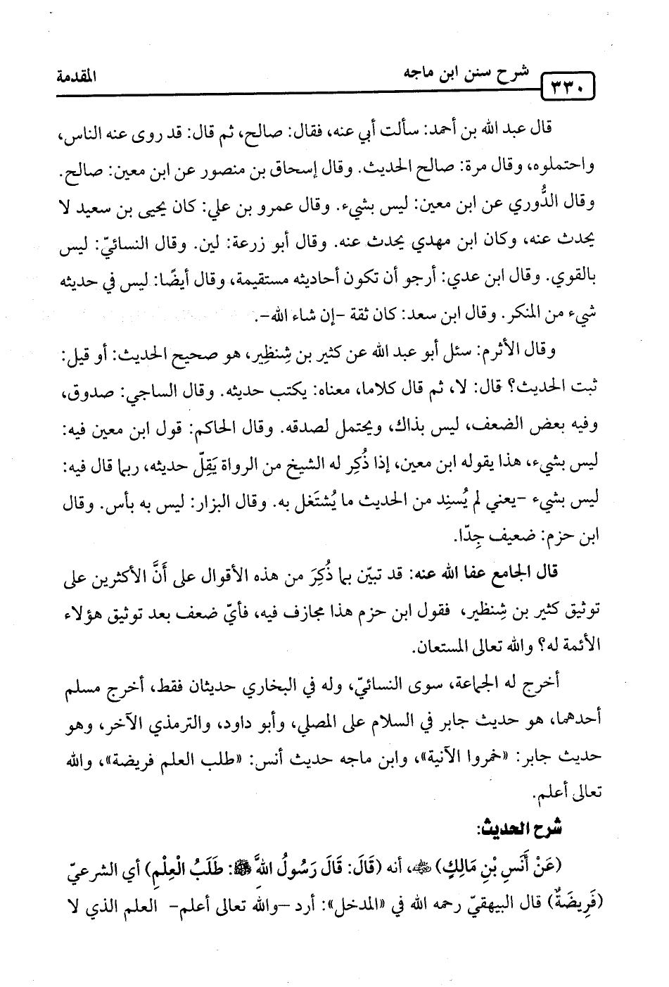 (عن أنسِ بْنِ مَالِكٍ) -رضي الله عنه-، أنه (قَالَ: قَالَ رَسول الله -صلى الله عليه وسلم-: طَلَب الْعِلْمِ) أي الشرعي (فريضة) قال البيهقيّ -رحمه الله- في "المدخل": أرد -والله تعالى أعلم- العلم الذي لا