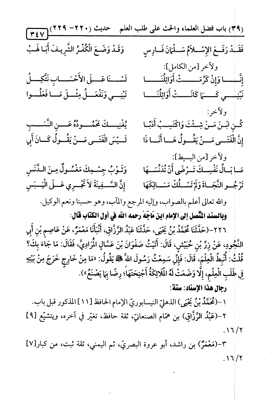 وبالسند المتّصل التي الإمام ابن ماجه -رحمه الله- في أول الكتاب قال: