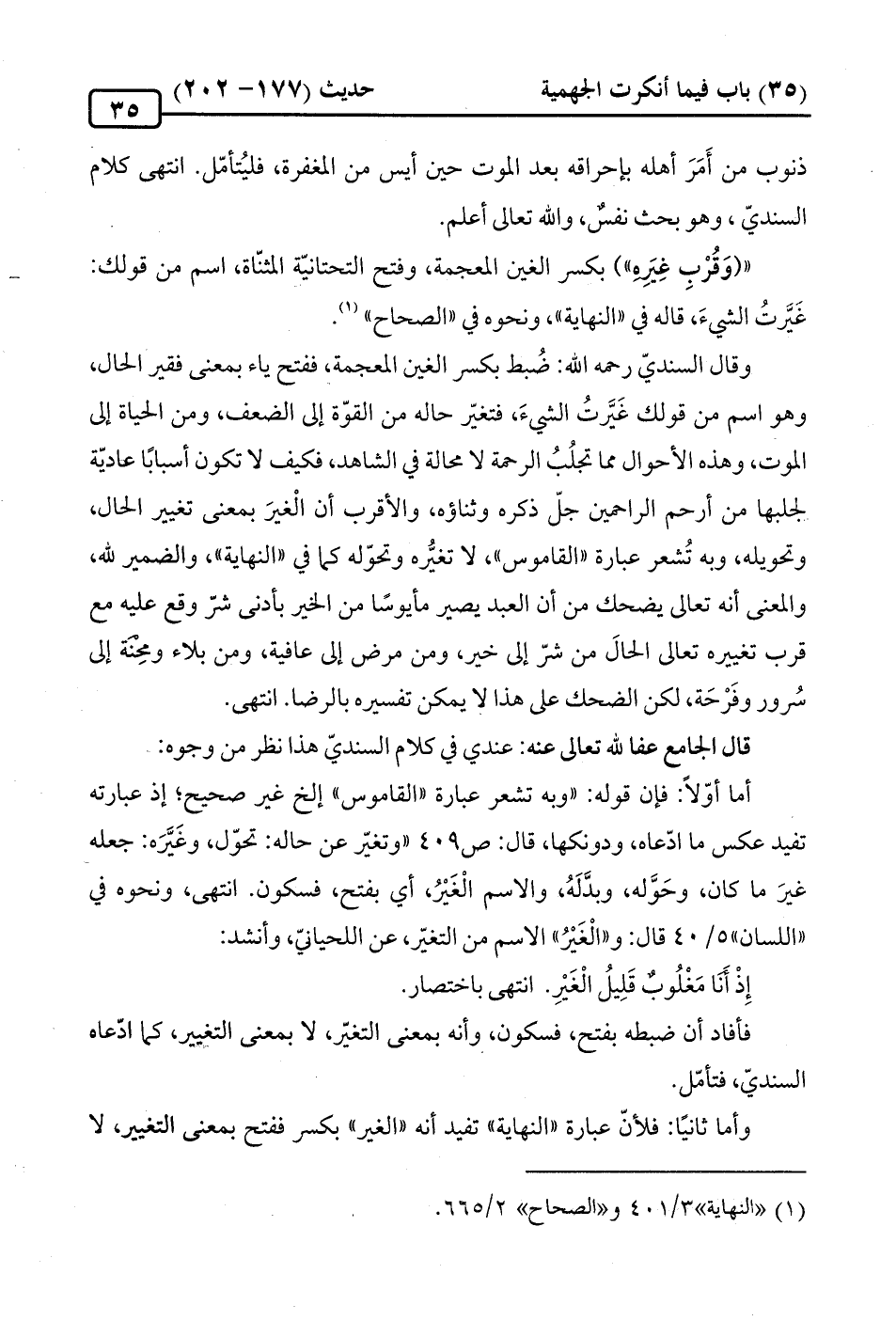 فأفاد أن ضبطه بفتح، فسكون، وأنه بمعنى التغيّر، لا بمعنى التغيير، كما ادّعاه السنديّ، فتأمّل.