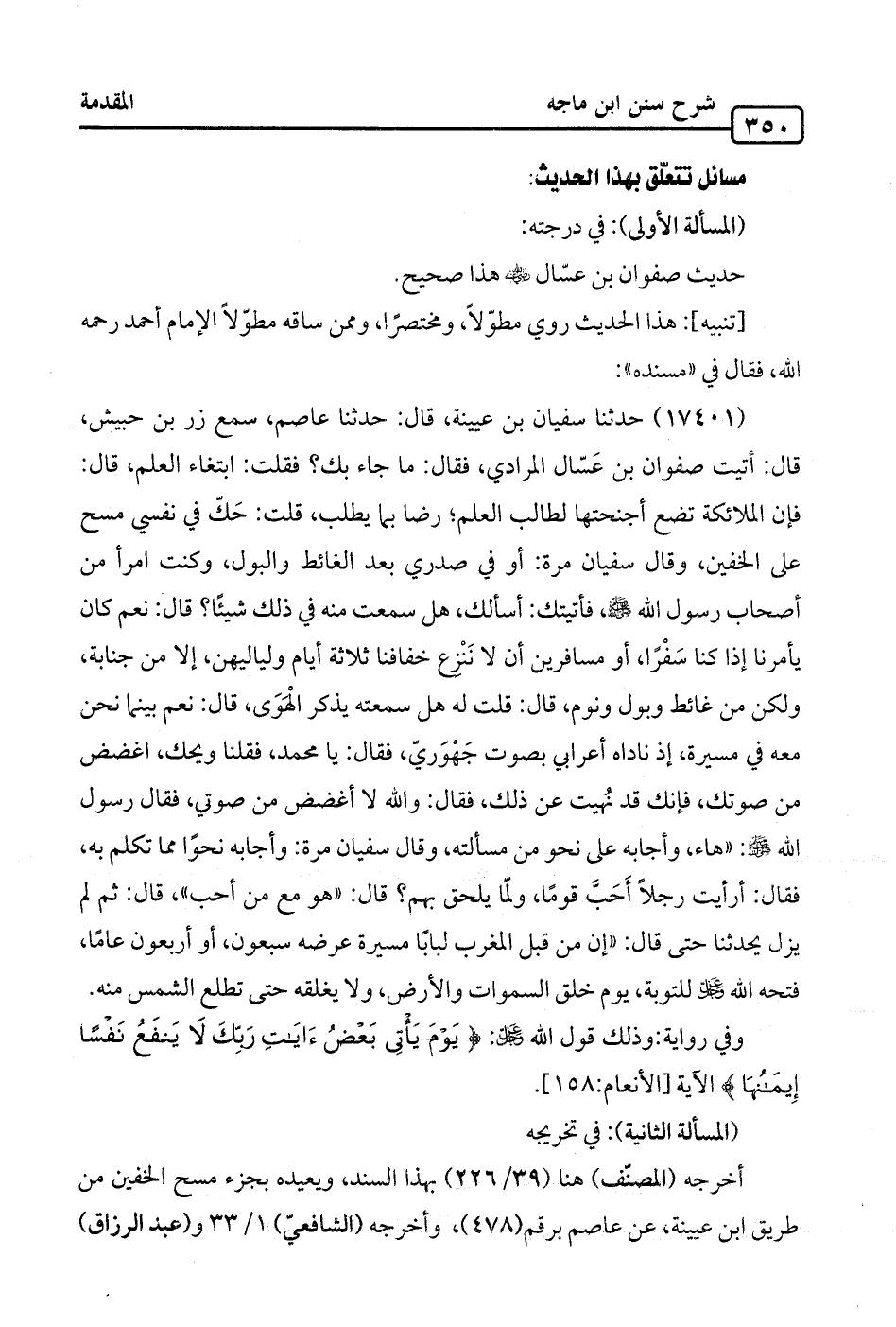 أخرجه (المصنف) هنا (39/ 226) بهذا السند، ويعيده بجزء مسح الخفين من طريق ابن عيينة، عن عاصم برقم (478)، وأخرجه (الشافعيّ) 1/ 33 و (عبد الرزاق)