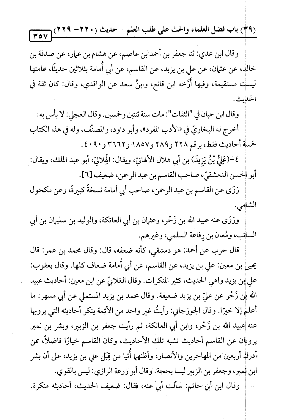 4 - (عَليُّ بْنُ يَزِيدَ) بن أبي هلال الألهانيّ، ويقال: الْهِلاليّ، أبو عبد الملك، ويقال: أبو الحسن الدمشقيّ، صاحب القاسم بن عبد الرحمن، ضعيف [6].
