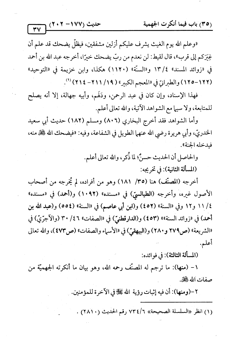 أخرجه (المصنّف) هنا (35/ 181) وهو من أفراده، لم يُخرجه من أصحاب الأصول غيره، وأخرجه (الطيالسيّ) في "مسنده" (1092) و (أحمد) في "مسنده" 4/ 11 و 12 وفي "السنة" (452) و (ابن أبي عاصم) في "السنة" (554) و (عبد الله بن أحمد) في "زوائد السنة (453) و (الدارقطني) في "الصفات" 46/ 30 (والآجرّيّ) في "الشّريعة" (ص 279 و 280) و (البيهقيّ) في "الأسماء والصفات" (ص 473)، والله تعالى أعلم.