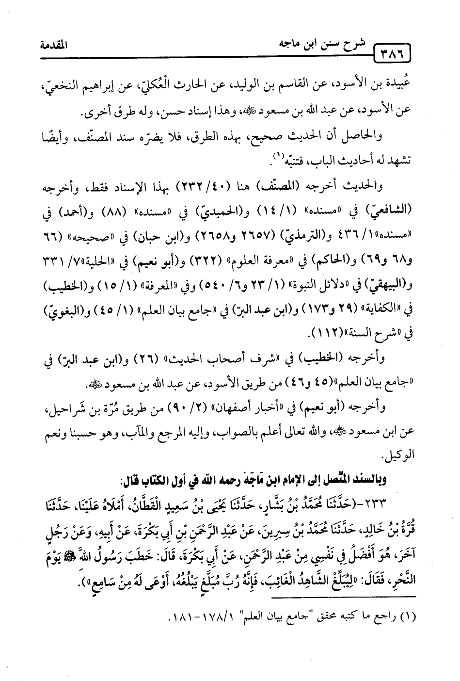 وأخرجه (الخطيب) في "شرف أصحاب الحديث" (26) و (ابن عبد البر) في "جامع بيان العلم" (45 و 46) من طريق الأسود، عن عبد الله بن مسعود -رضي الله عنه-.