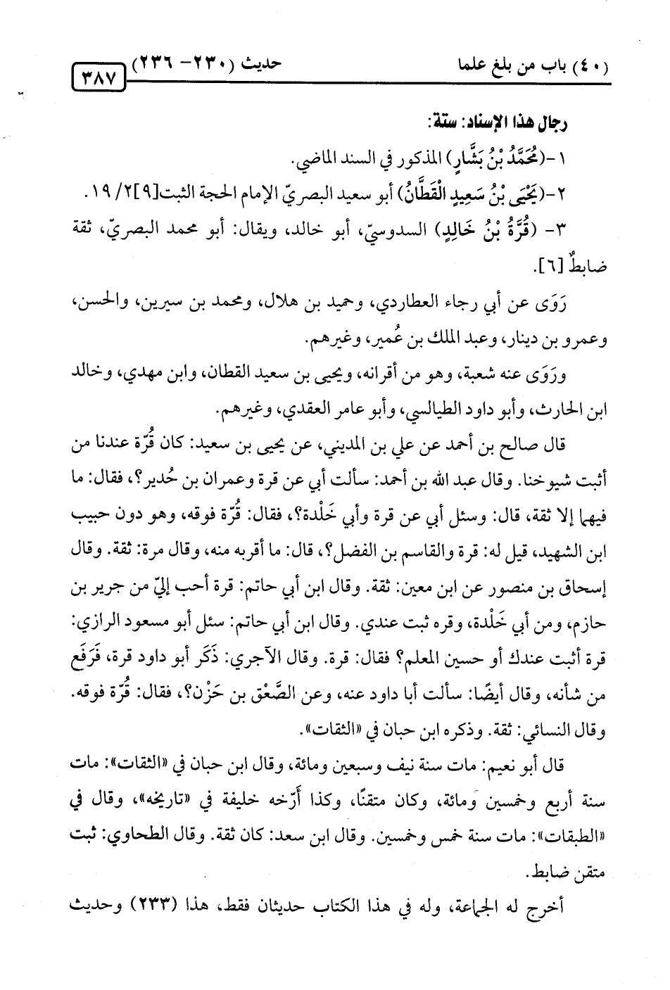 3 - (قُرَّةُ بْنُ خَالِدٍ) السدوسيّ، أبو خالد، ويقال: أبو محمد البصريّ، ثقة ضابطٌ [6].