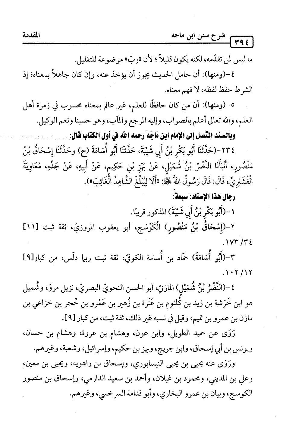 4 - (النَّضْرُ بنُ شُمَيْلٍ) المازنيّ، أبو الحسن النحويّ البصريّ، نزيل مروَ، وشُميل هو ابن خَرَشة بن زيد بن كُلثوم بن عَنَزة بن زُهير بن عَمْرو بن حجر بن خزاعي بن مازن بن عمرو بن تميم، وقيل في نسبه غير ذلك، ثقة ثبت، من كبار [9].