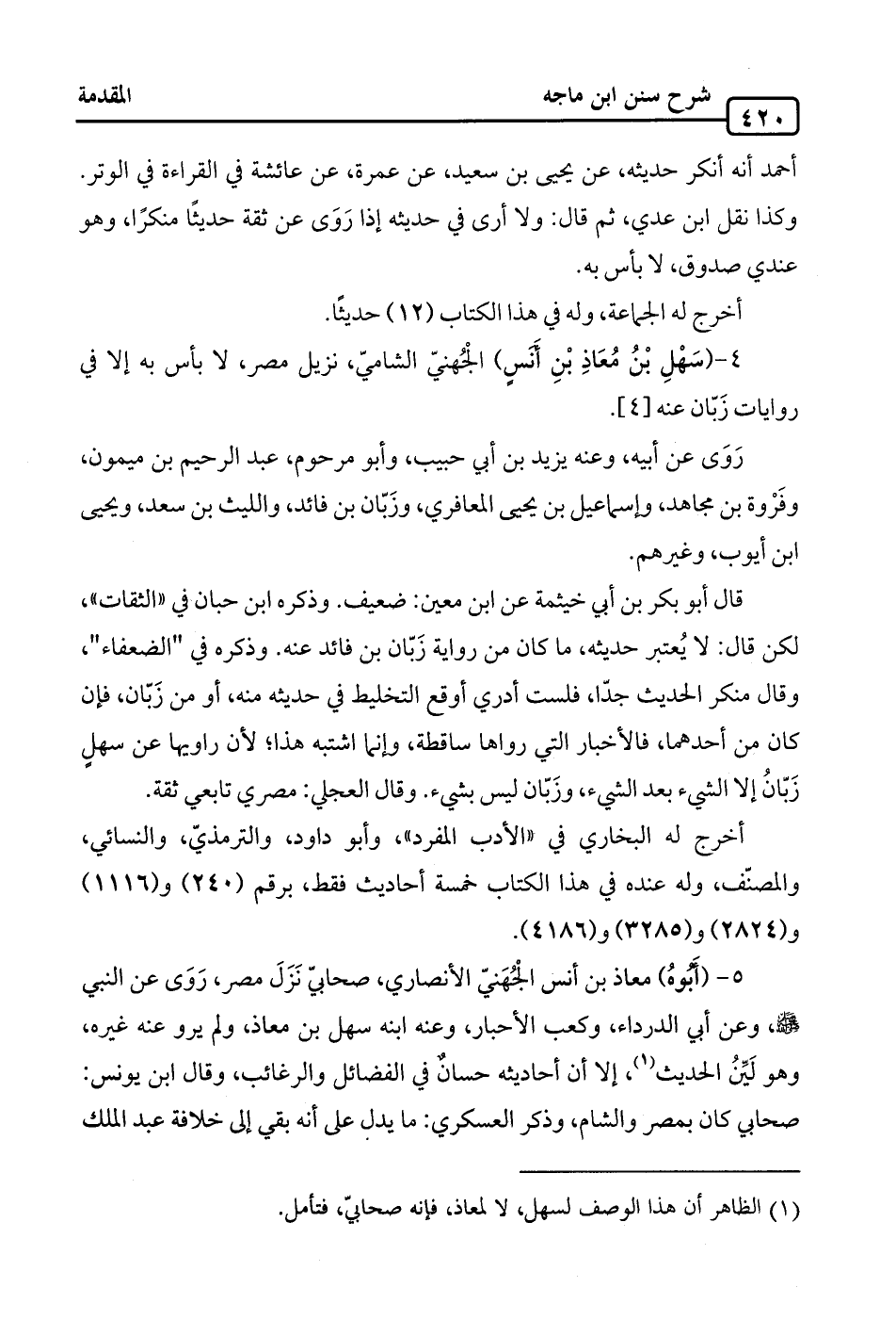 4 - (سَهْلِ بْنُ مُعَاذِ بْنِ أَنَسٍ) الجُهنيّ الشاميّ، نزيل مصر، لا بأس به إلا في روايات زَبّان عنه [4].