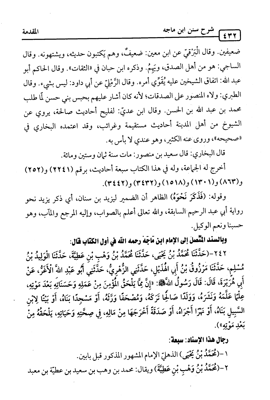 وبالسند المتّصل إلى الإمام ابن مَاجَه وحمه الله في أول الكتاب قال:
