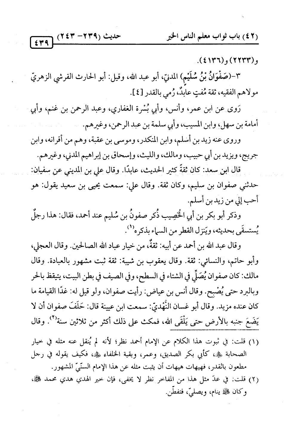 3 - (صَفْوَانُ بْنُ سُلَيْمٍ) المدنيّ، أبو عبد الله، وقيل: أبو الحارث القرشي الزهريّ مولاهم الفقيه، ثقة مُفتٍ عابدٌ، رُمي بالقدر [4].