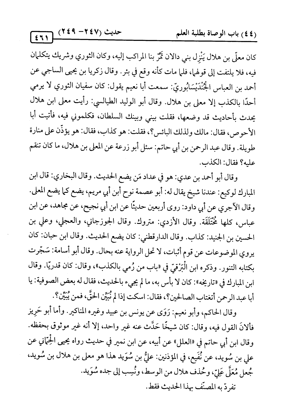 وقال ابن أبي حاتم في "العلل" عن أبيه، عن ابن نمير في حديث رواه يحيى الْحِمّاني عن علي بن سُويد، عن نُفَيع، في المؤذنين: عليُّ بن سُوَيد هذا هو معلى بن هلال بن سُويد، جُعل مُعَلَّى عَليّ، وحُذف هلال من الوسط، ونُسِب إلى جده سُوَيد.