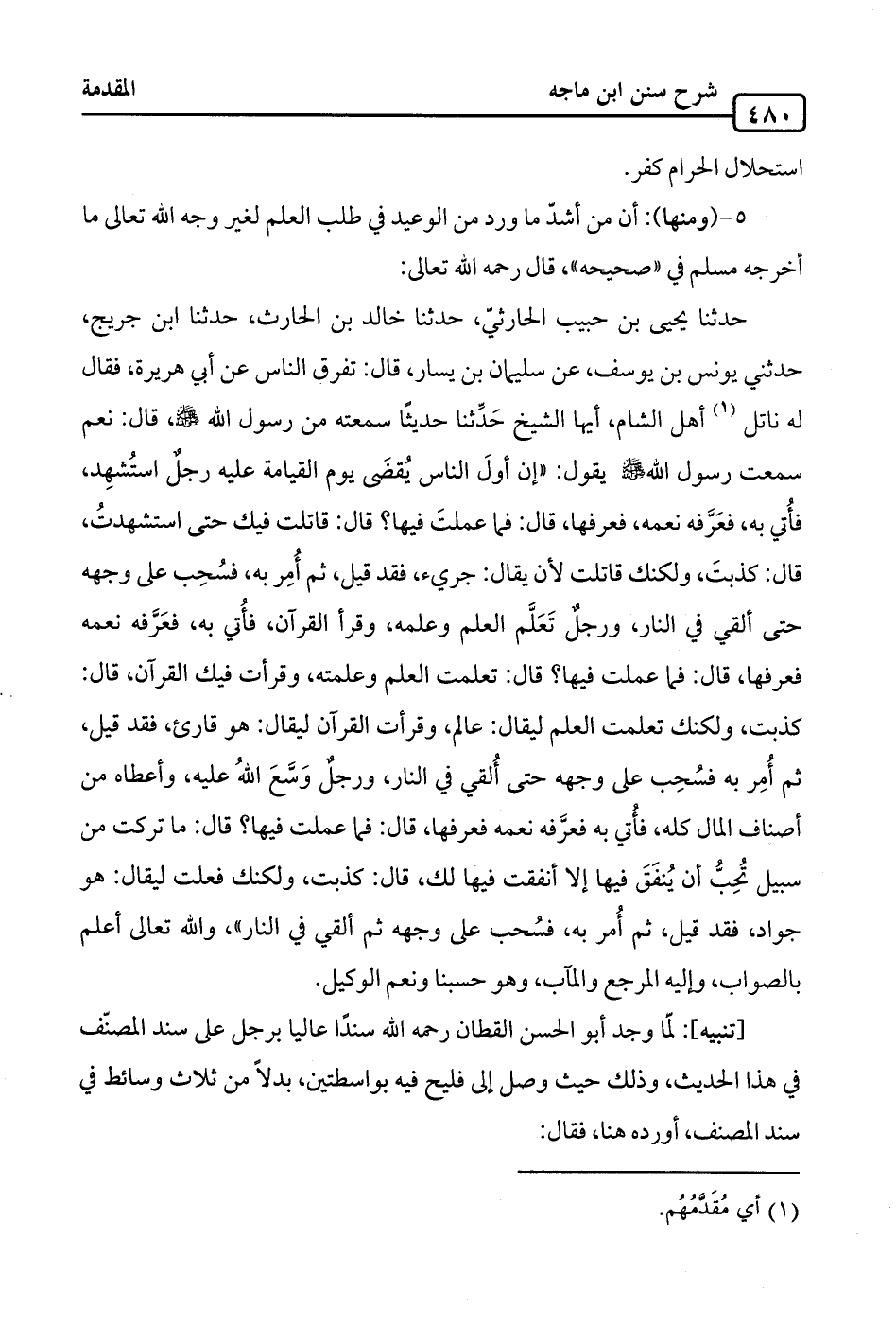 5 - (ومنها): أن من أشدّ ما ورد من الوعيد في طلب العلم لغير وجه الله تعالى ما أخرجه مسلم في "صحيحه"، قال رحمه الله تعالى: