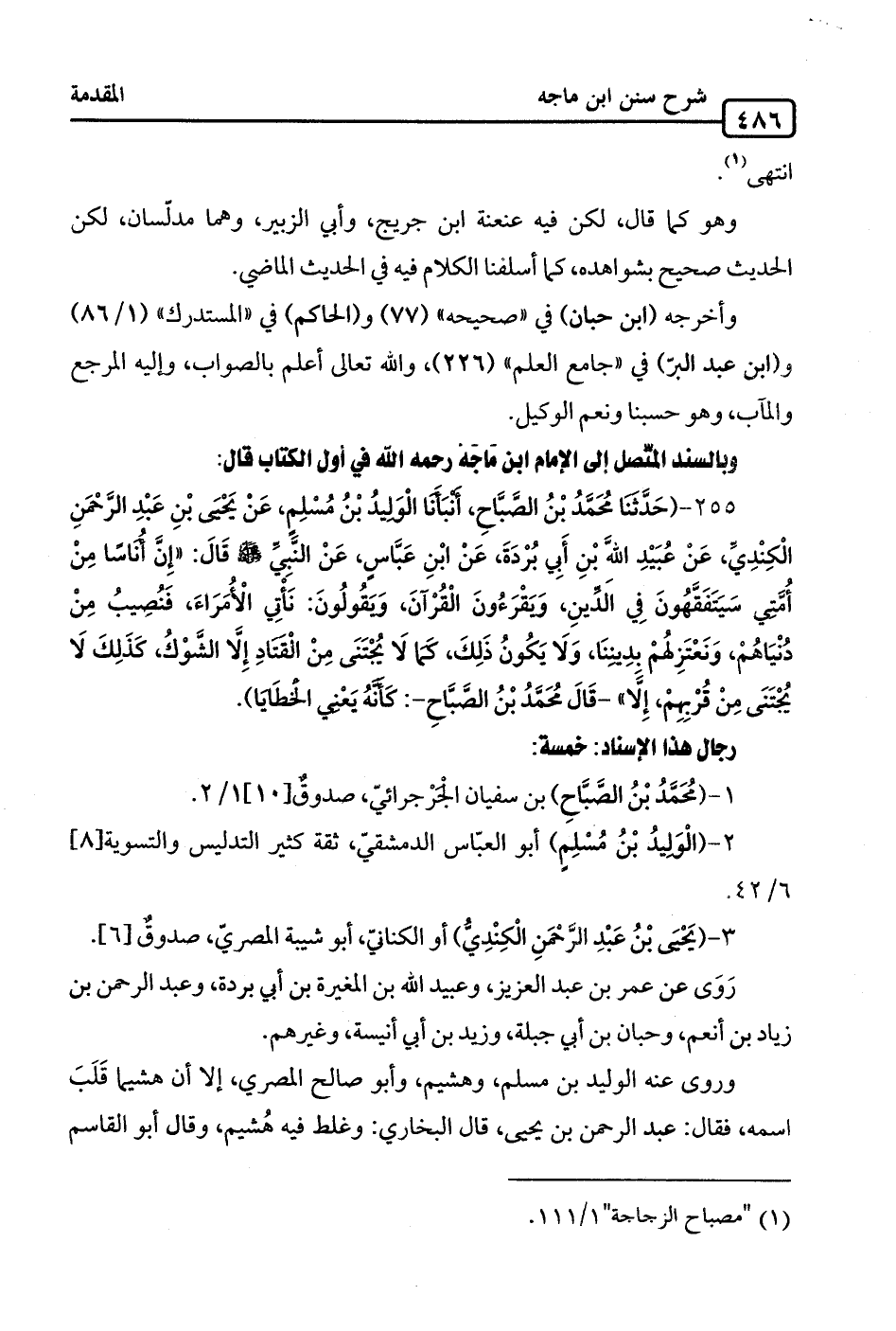 255 - (حَدَّثَنَا مُحَمَّدُ بْنُ الصَّبَّاحِ، أَنبَأَنَا الْوَلِيدُ بْنُ مُسْلِمٍ، عَن يَحْيَىَ بْنِ عَبْدِ الرَّحْمَنِ الْكِنْدِيِّ، عَنْ عُبَيْدِ الله بْنِ أَبِي بُرْدَةَ، عَنْ ابْنِ عَبَّاسٍ، عَنْ النَّبِيِّ -صلى الله عليه وسلم- قَالَ: "إِنَ أُناسًا مِنْ أُمَّتِي سيَتَفَقَّهُونَ في الدِّينِ، وَيَقْرَءُونَ الْقُرْآنَ، وَيَقُولُونَ: نَأْتِي الْأُمَرَاءَ، فَنُصِيبُ مِن دُنْيَاهُمْ، وَنَعْتَزِلهُمْ بدِينِنَا، وَلَا يَكُونُ ذَلِكَ، كَما لَا يُجْتَنَى مِن الْقتادِ إِلا الشَّوْكُ، كَذَلِكَ لَا يُجْتَنَى مِنْ قُرْبِهِمْ، إِلَّا" -قَالَ مُحَمَّدُ بْنُ الصَّبَّاحِ-: كَأَنَّهُ يَعْنِي الخطَايَا).