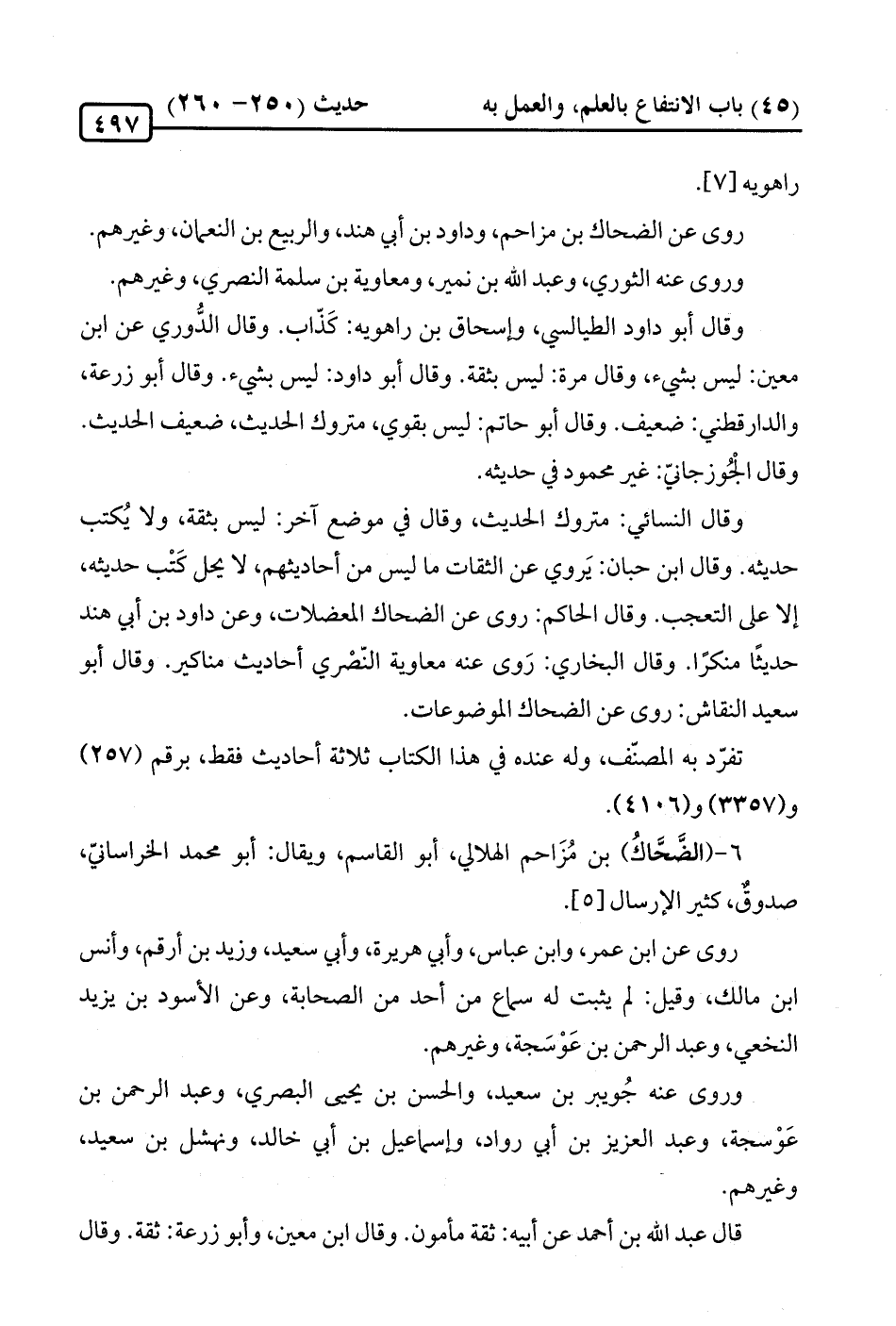6 - (الضَّحَّاكُ) بن مُزَاحم الهلالي، أبو القاسم، ويقال: أبو محمد الخراسانيّ، صدوقٌ، كثير الإرسال [5].