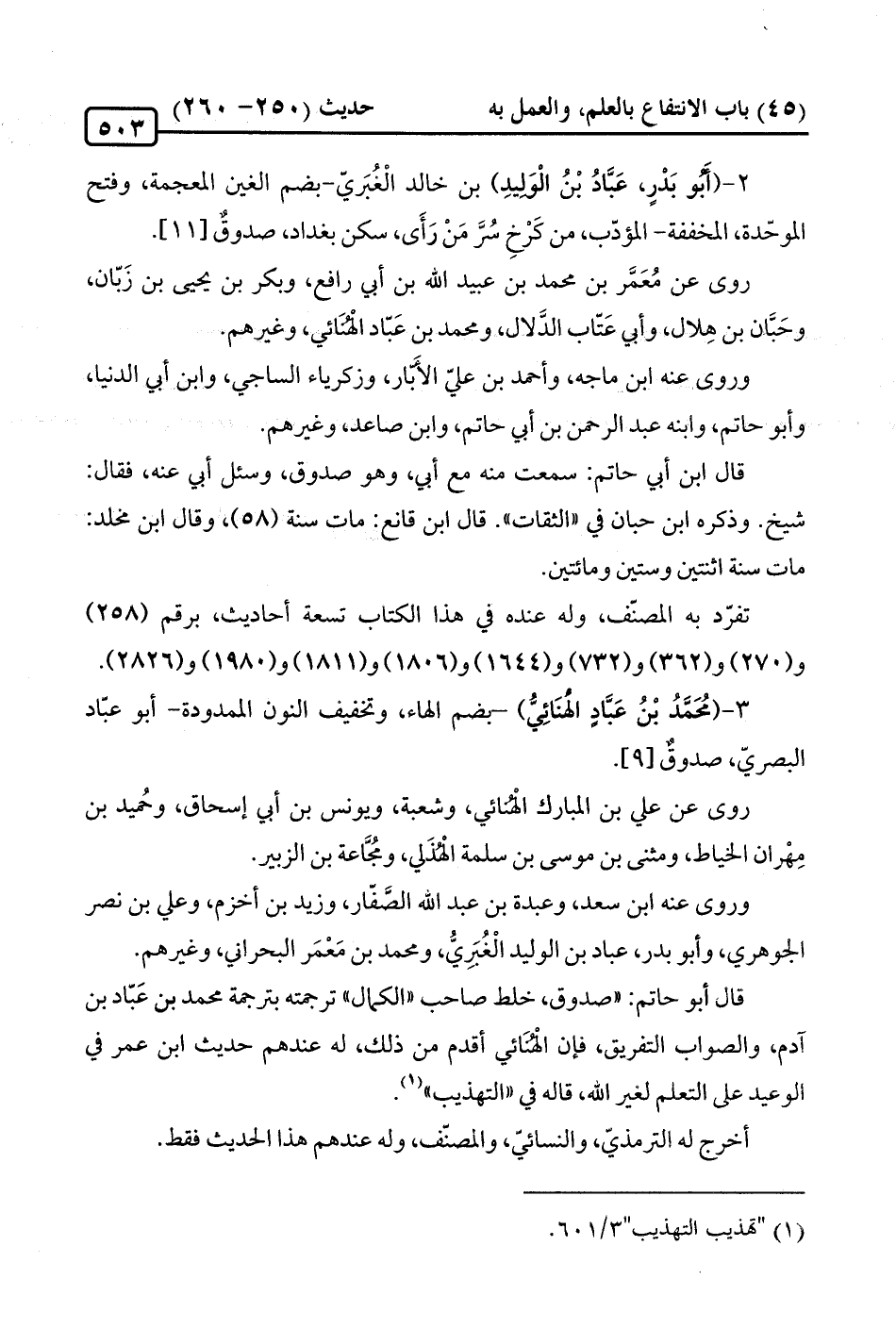 3 - (مُحَمَّدُ بْنُ عَبَّادٍ الْهُنَائِيُّ) -بضم الهاء، وتخفيف النون الممدودة- أبو عبّاد البصريّ، صدوقٌ [9].