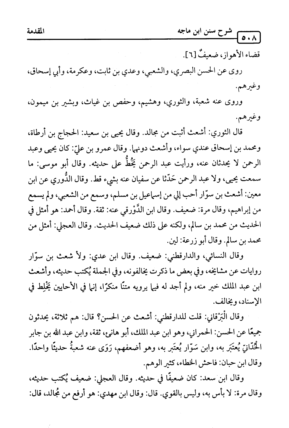 وقال الْبَرْقاني: قلت للدارقطني: أشعث عن الحسن؟ قال: هم ثلاثة، يحدثون جميعًا عن الحسن: الحمراني، وهو ابن عبد الملك، أبو هانئ، ثقة، وابن عبد الله بن جابر الْحُدّانيّ يُعتَبر به، وابن سَوّار يُعتَبر به، وهو أضعفهم، رَوَى عنه شعبةُ حديثًا واحدًا.