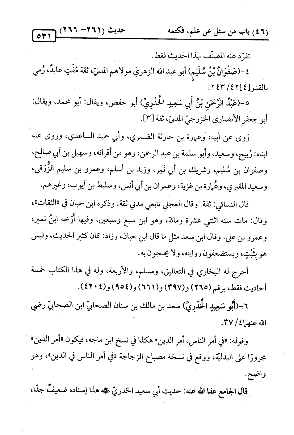 5 - (عَبْدُ الرَّحْمَنِ بْنُ أَبِي سَعِيدٍ الخُدْرِيِّ) أبو حفص، ويقال: أبو محمد، ويقال: أبو جعفر الأنصاري الخزرجيّ المدنيّ، ثقة [3].